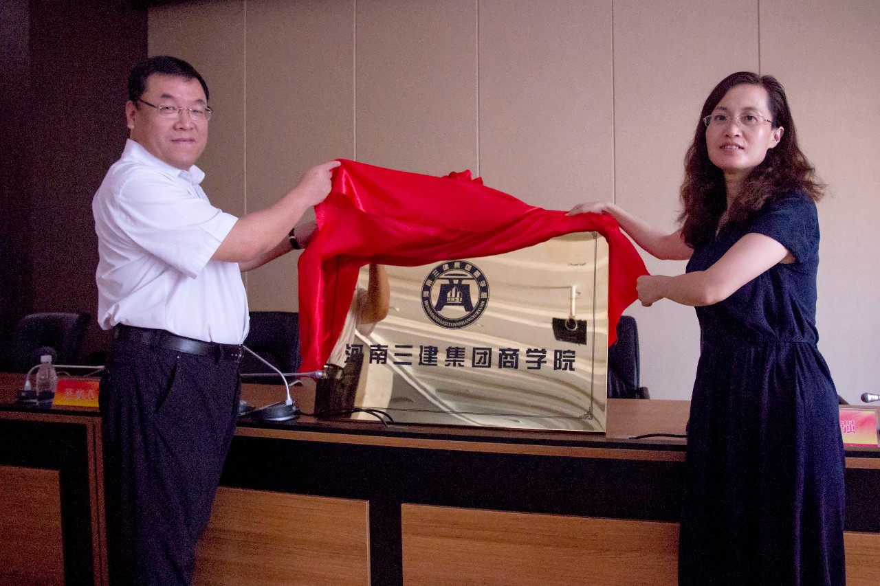 集團公司董事長、河南三建集團商學(xué)院黨委書記張超鄭重宣布——河南三建集團商學(xué)院成立,并與洛陽理工學(xué)院副校長丁梧秀教授共同為河南三建集團商學(xué)院揭牌。